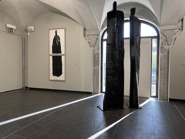 Dans l'œuvre de Christian Lapie, le dessin et la sculpture dialoguent sans relâche. Lavis, aquarelles, estampes, fusains : autant de pratiques qui prolongent la sculpture sans jamais si réduire. Les sculptures, elles, ponctuent l'espace comme des veilleurs anonymes, universels et silencieux.