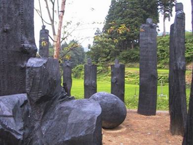 • |Les bois sont sculptés puis créosotés dans les Ardennes à Haybes.<br>Les figures sont ensuites installées sur d'anciennes rizières de Matsudaï.<br><span style="font-style: italic;">The woods are sculpted and creosoted in Haybes, Ardennes, in the North of Champagne area.</span><br><span style="font-style: italic;">Then the figures are installed on ex-rice fields of Matsudaï. </span>